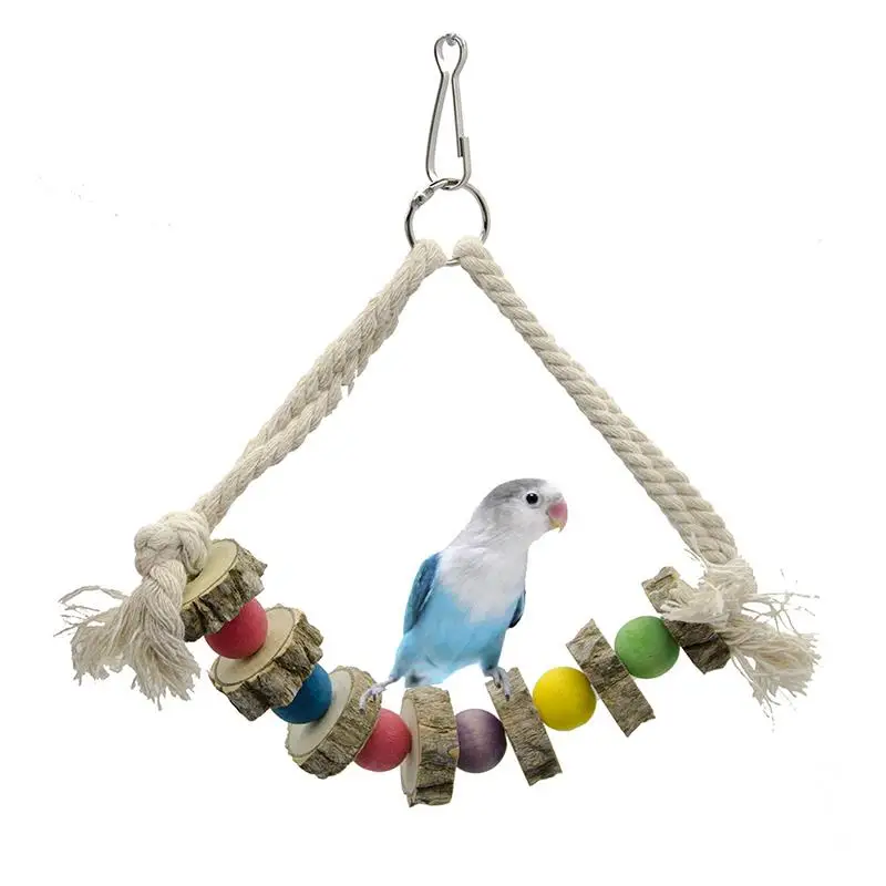 Name: De Madera columpio para aves cuerda de juguete de algodón loro de juguete diseño de perlas periquito perca jaula de pájaro de juguete de felpa para soporte de accesorios de aves